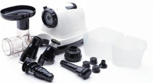 Eu nu l-as numi storcator pentru ca rolul sau in bucatarie este de ajutor de bucatar, un bucataras. Acest ajutor este posibil datorita tehnologiei Hurom Slow Squeezing System de care beneficiaza storcatorul orizontal. Aparatul Hurom GD va ofera sucuri minunate, mixate lent din orice leguma, cu textura tare sau moale, din orice fruct, din orice verdeata sau iarba de grau. Dar aparatul este si robot de bucatarie care detine 4 adaptoare astfel, puteti prepara: spaghete, mousse, serbet, inghetata. Puteti rasni condimente, sare, puteti realiza sosuri si puteti framanta aluat cu micul bucatar. Mai puteti crea baza pentru branza Tofu.